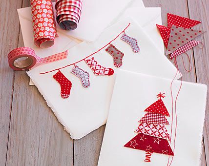 A essayer : des cartes avec du masking tape et des chutes de tissu :