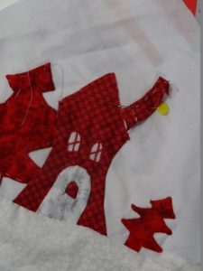 Il s’agit de réaliser des carrés en appliqué, sur le thème des maisons, pour réaliser un patch monochrome.