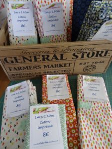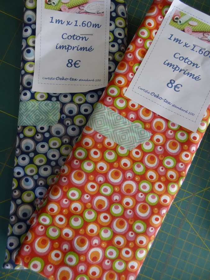 Vous pouvez retrouver ces tissus au détail à la Boutik’, au prix très doux de 8€ le mètre, en coupons de 1m et 1.50m à Saint Georges de Commiers ce week-end, et en ligne dans les jours qui viennent!